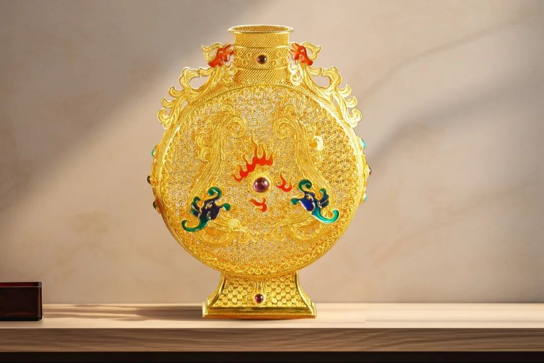 金兰花丝镶嵌技艺承载深厚文化底蕴,以金、银、铜等贵金属为原料,经轧条抽丝后运用掐、填、堆、垒等八大技法塑形,再通过搜、崩、镶石等镶嵌工艺点缀,最后经平、阳、镂空等多道工序完成创作。该技艺突破传统桎梏融入现代审美,斩获“百花杯”等多项国家级荣誉,成功实现“首饰化、实用化、市场化”转型,让非遗在当代活态传承。